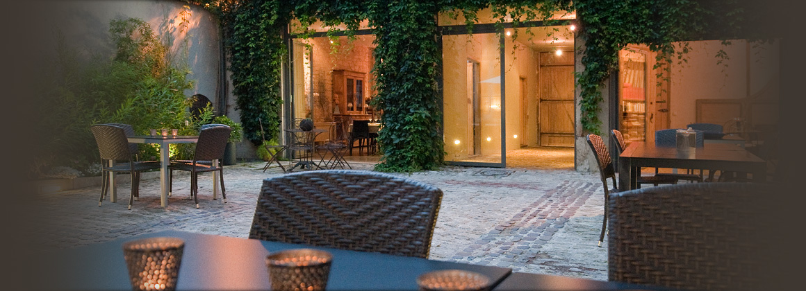 Une écurie aménagée en bibliothèque et une grange transformée en salle de séminaire. Autant d’espaces de réunions, de fêtes et de rencontres qui ceinturent la cour pavée prolongée d’un caillebotis de bois exotique. Cette cour centrale abritée du vent permet de prendre le petit-déjeuner en extérieur, à la belle la saison.